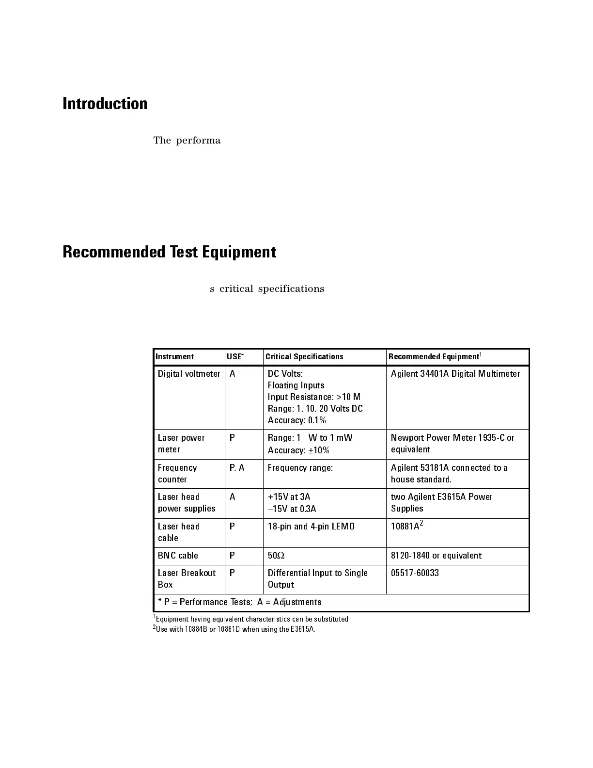 Recommended Test Equipment