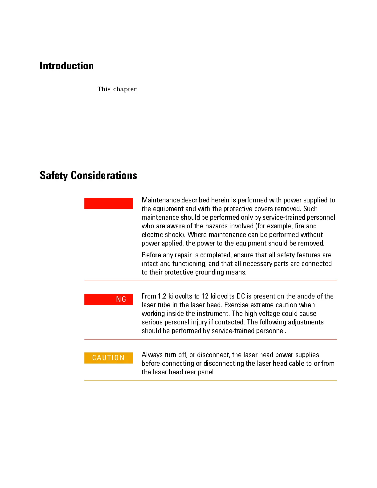 This chapter describes adjustments and checks required to return the laser