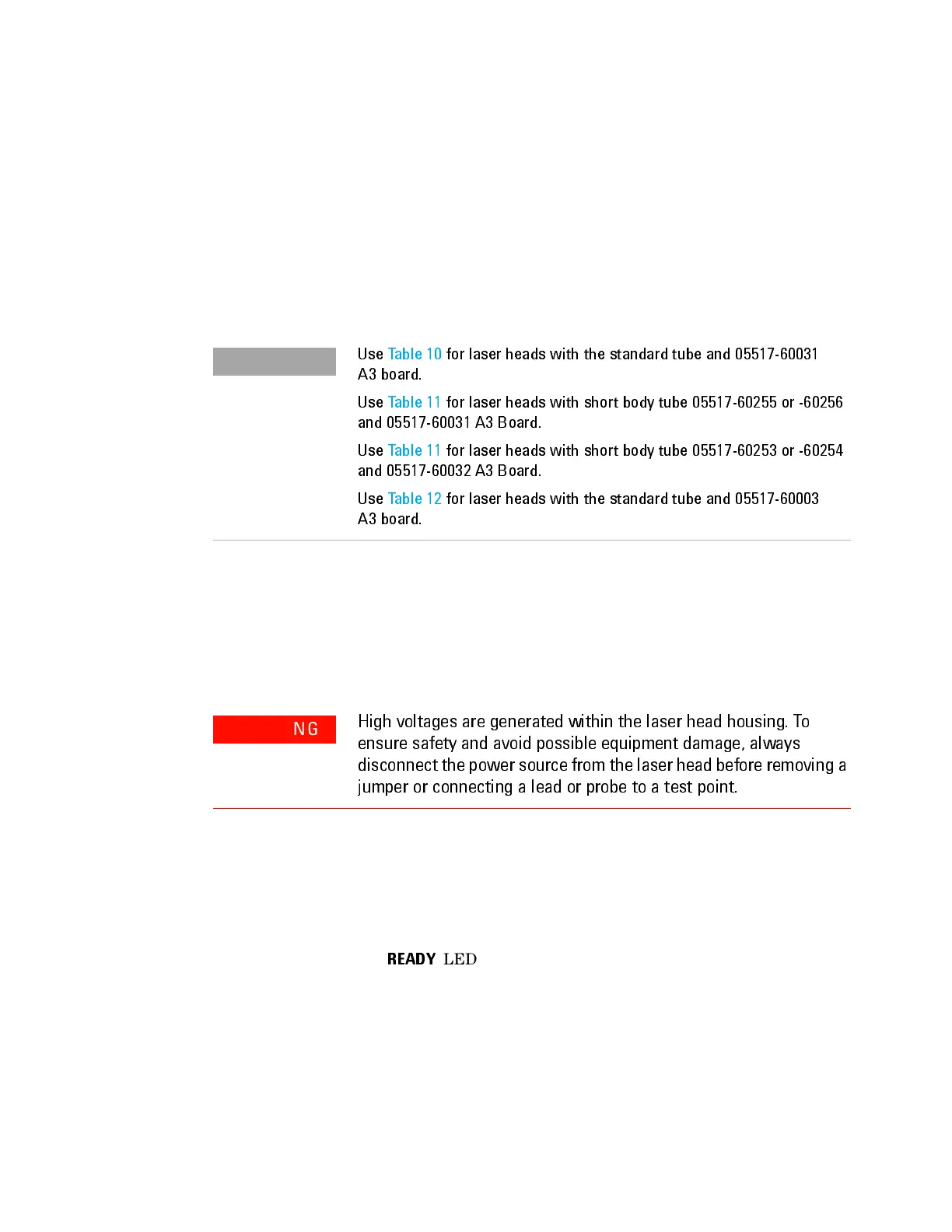 Use Table12 for laser heads with the standard tube and 05517-60003