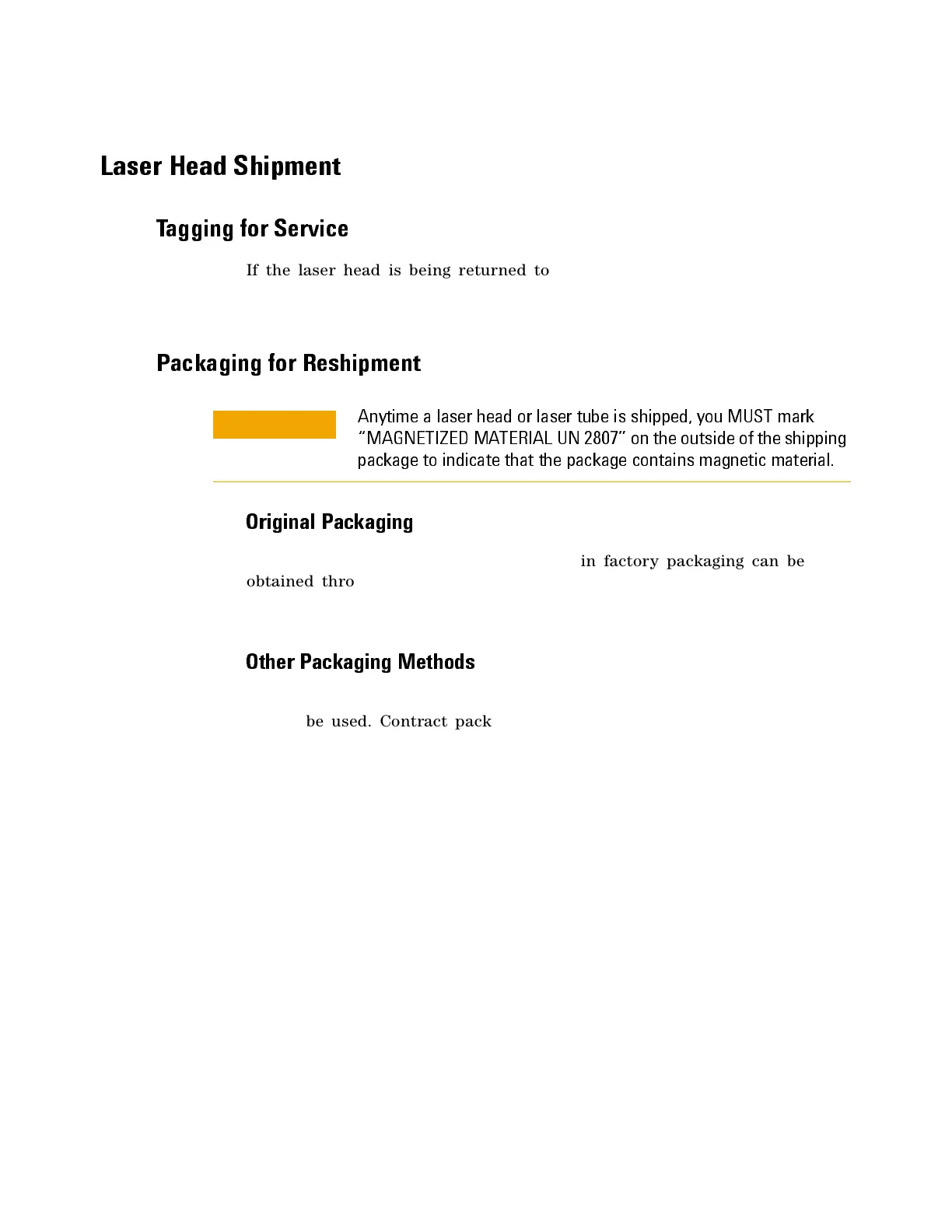 If it becomes necessary to reship the laser head, good commercial packing