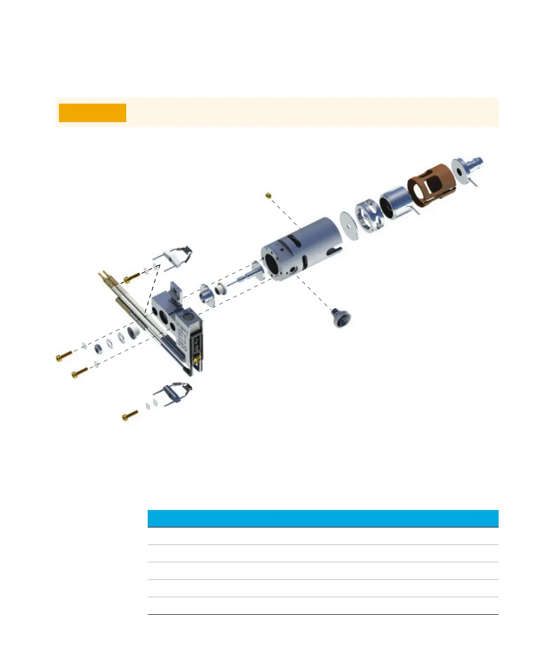Table 20 Parts list for the EI standard or EI Inert source (Figure 47)