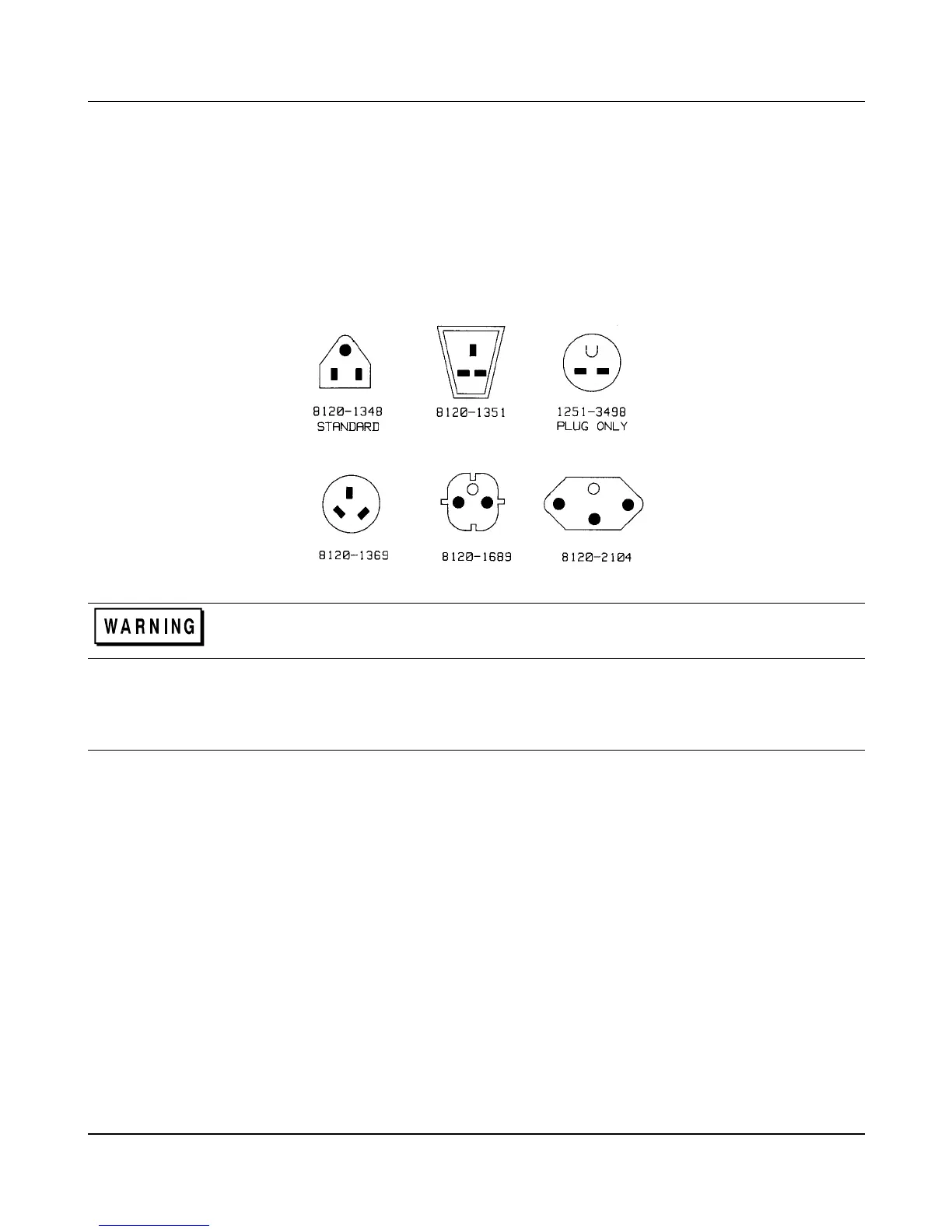 shows the standard configuration of plugs used by Agilent Technologies. Below each drawing is the Agilent part number