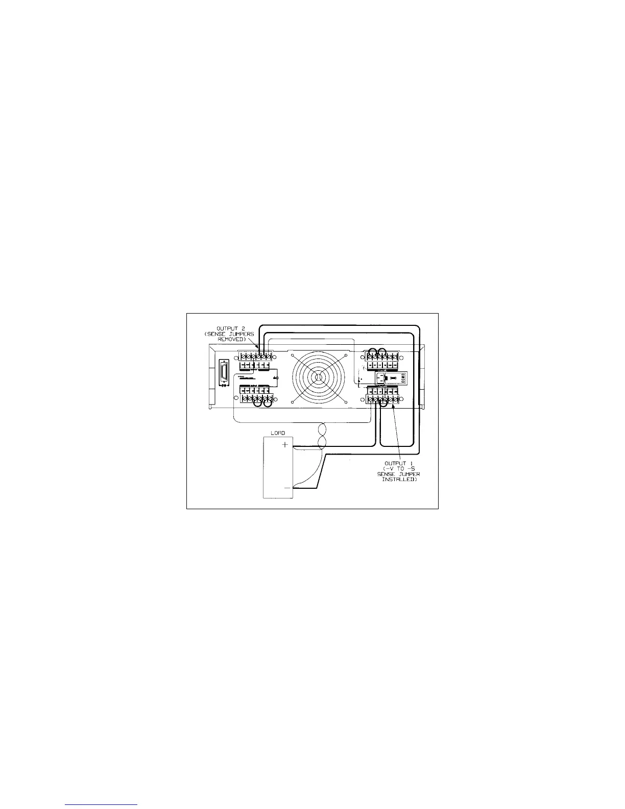If it is necessary to remote voltage sense at the load, connect the sense leads of output 1 and output 2 as shown in Figure