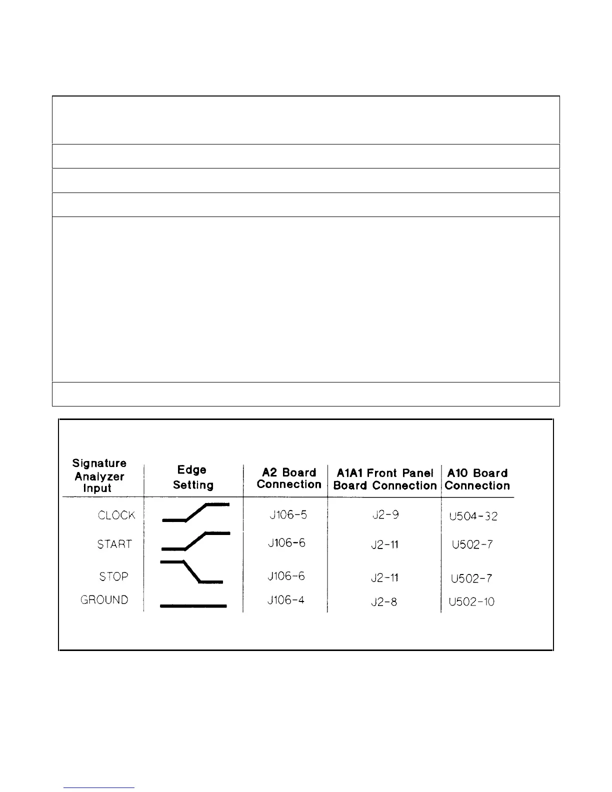 3. Connect signature analyzer CLOCK, START, STOP, and GROUND inputs as show in Figure 3- 16 .