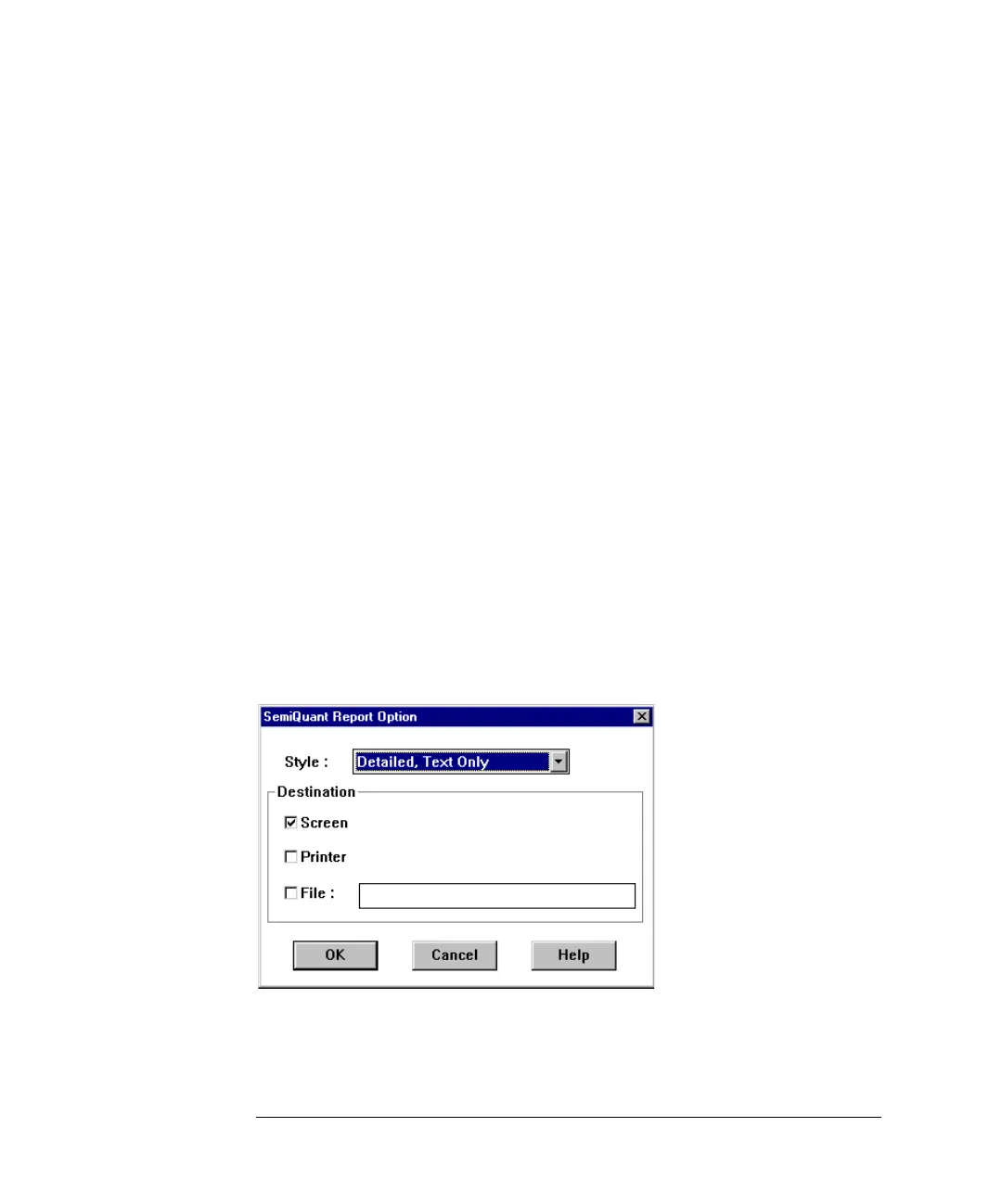 SemiQuant Report Option Dialog Box