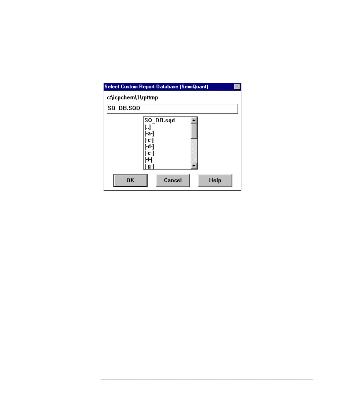 a) The Select Custom Report Database (SemiQuant) dialog box appears.