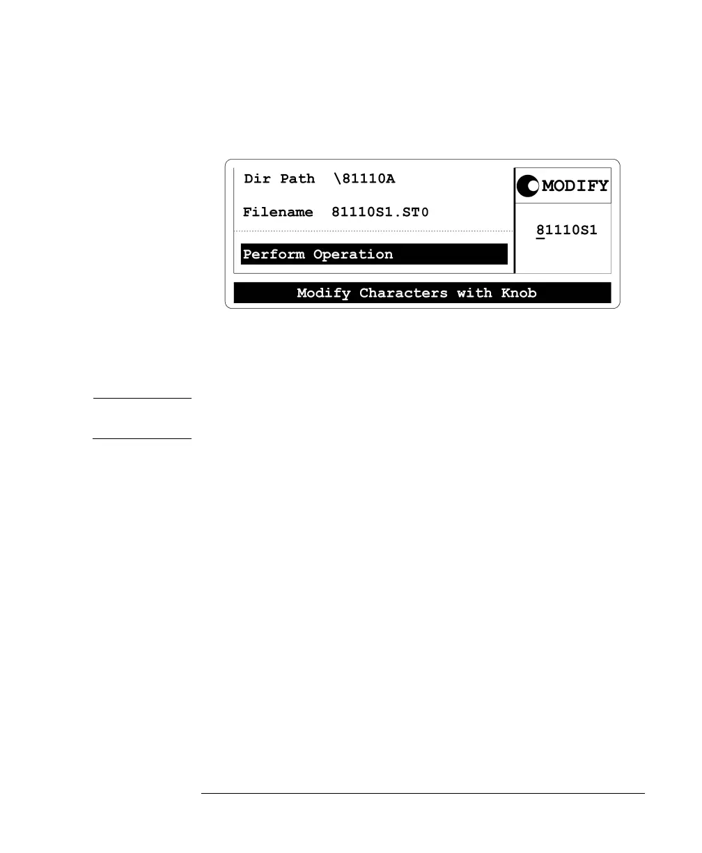 To modify the filename, move the character cursor with the CURSOR