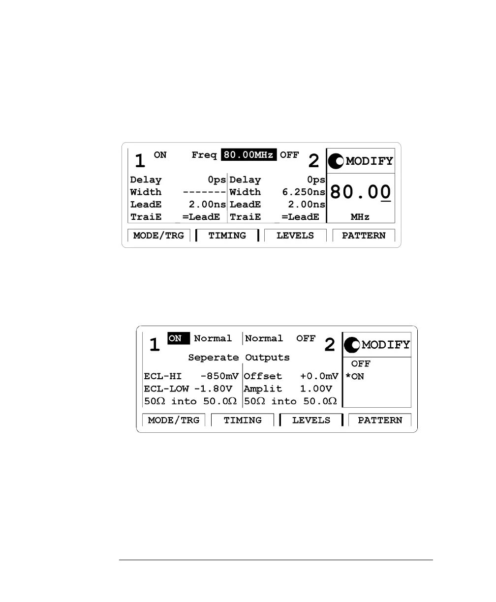 2 Change Offset and Amplitude mode to ECL levels by selecting