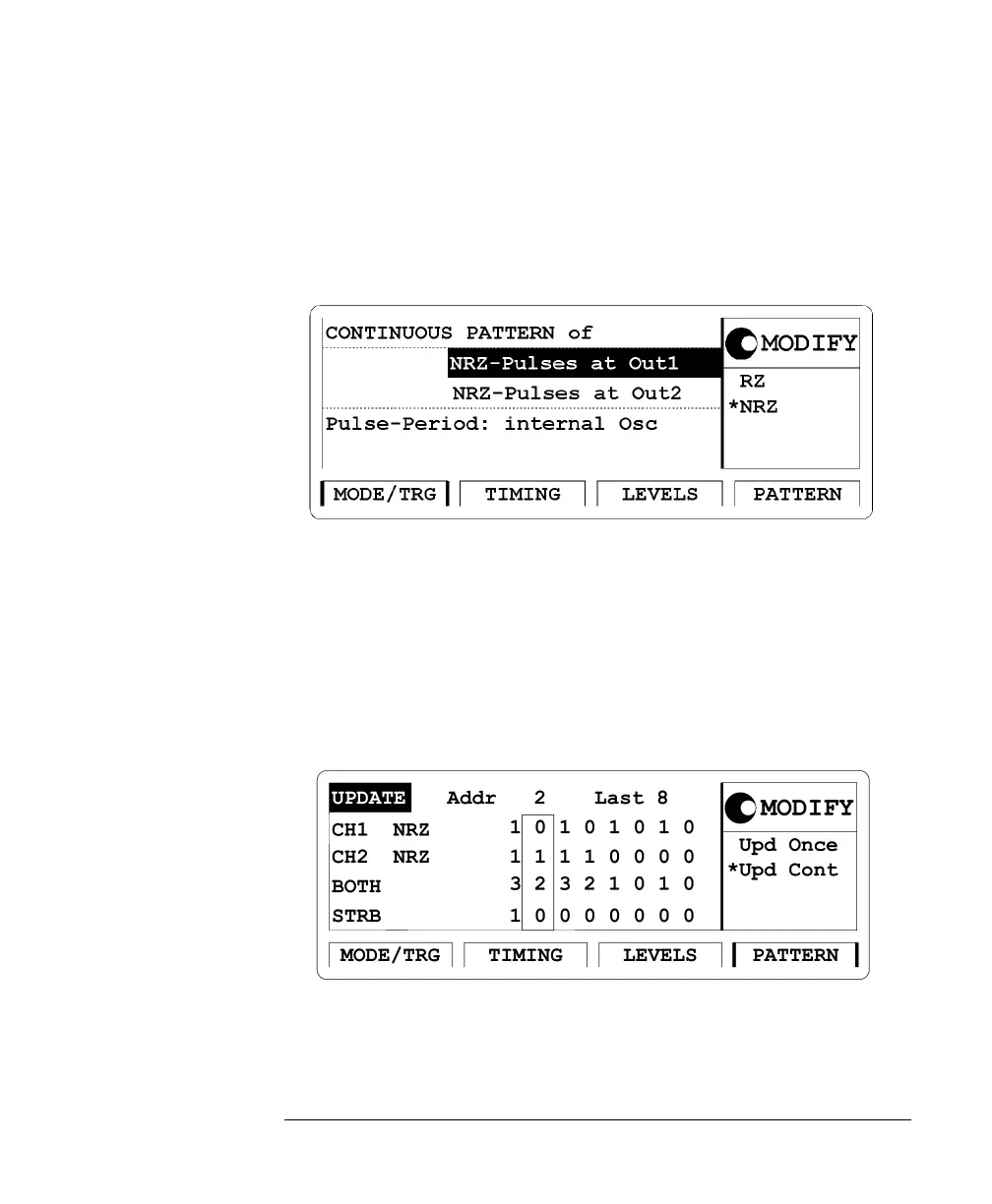 2 Press the MODE/TRG softkey to enter the Mode/Trigger screen.