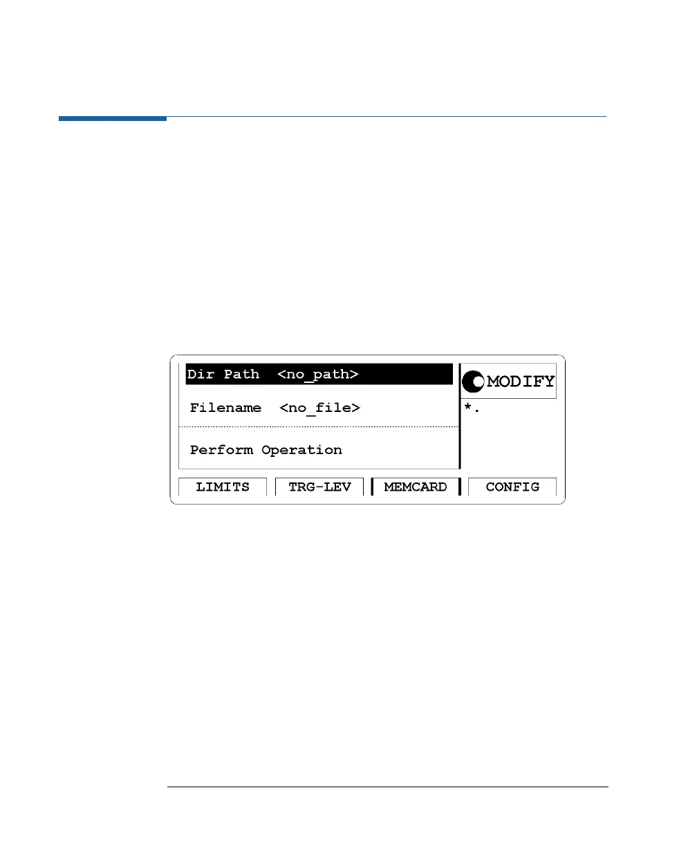 To access the Memory Card screen, press the MEMCARD softkey. If the
