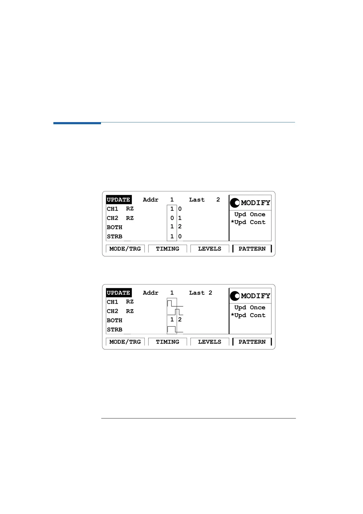 the instrument when you select the pattern mode on the Mode/Trigger