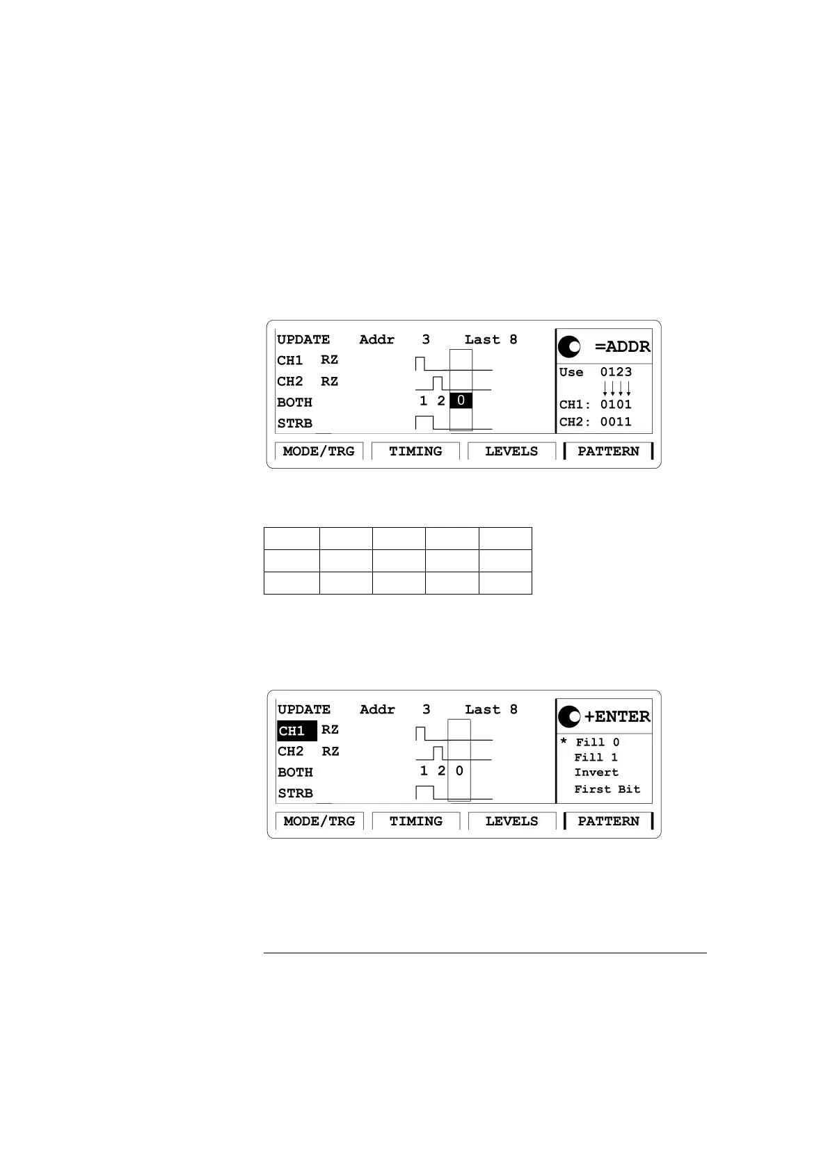 Move the entry focus onto the CH1, CH2, BOTH or STRB at the left hand