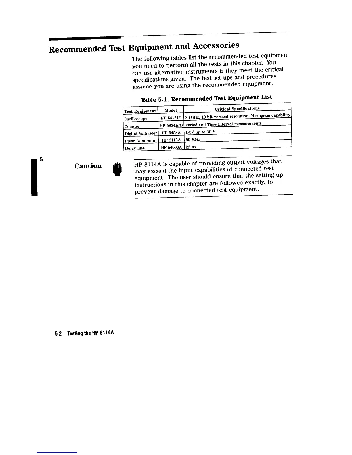 Agilent Technologies 8114A - Recommended Test Equipment and Accessories