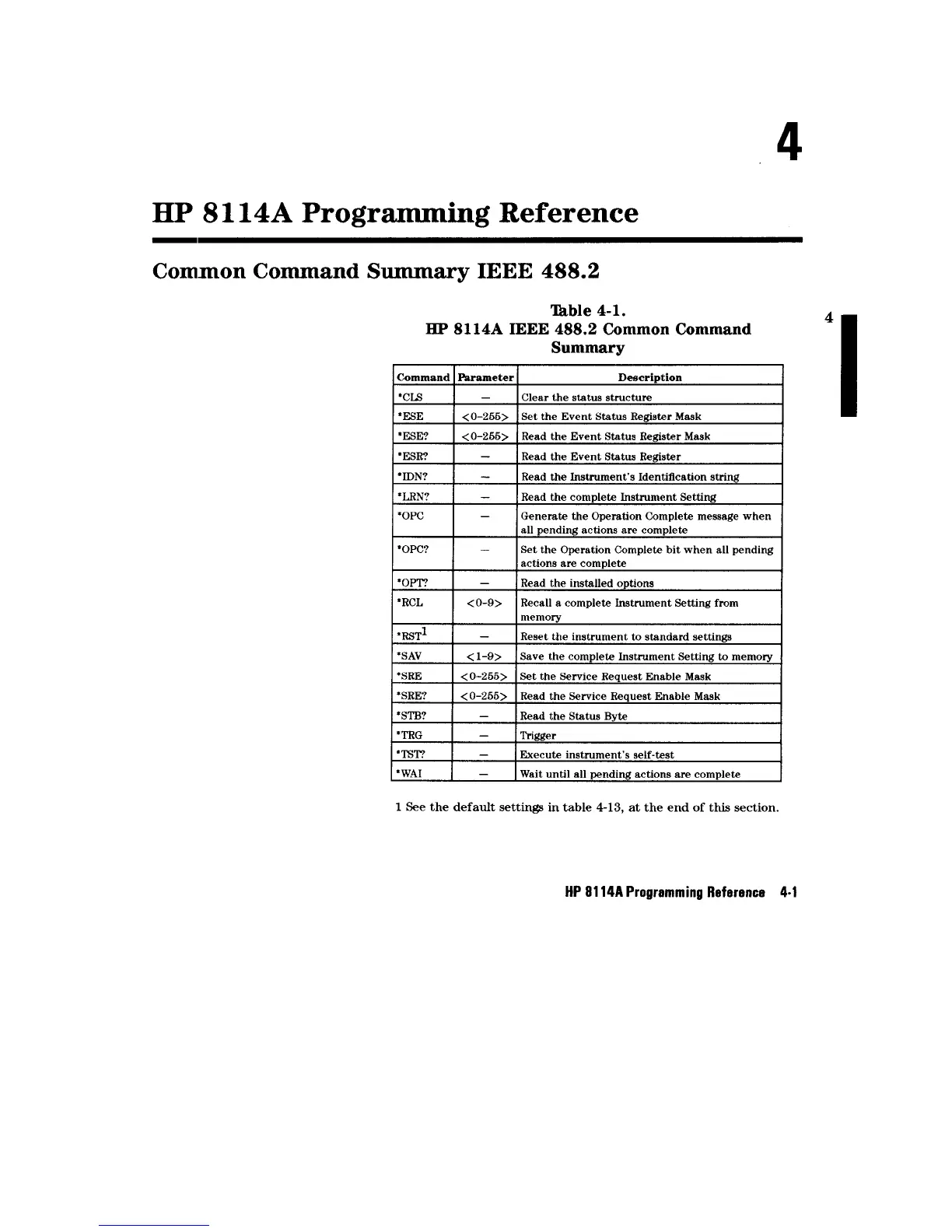 Agilent Technologies 8114A - HP 8114 A Programming Reference; Common Command Summary