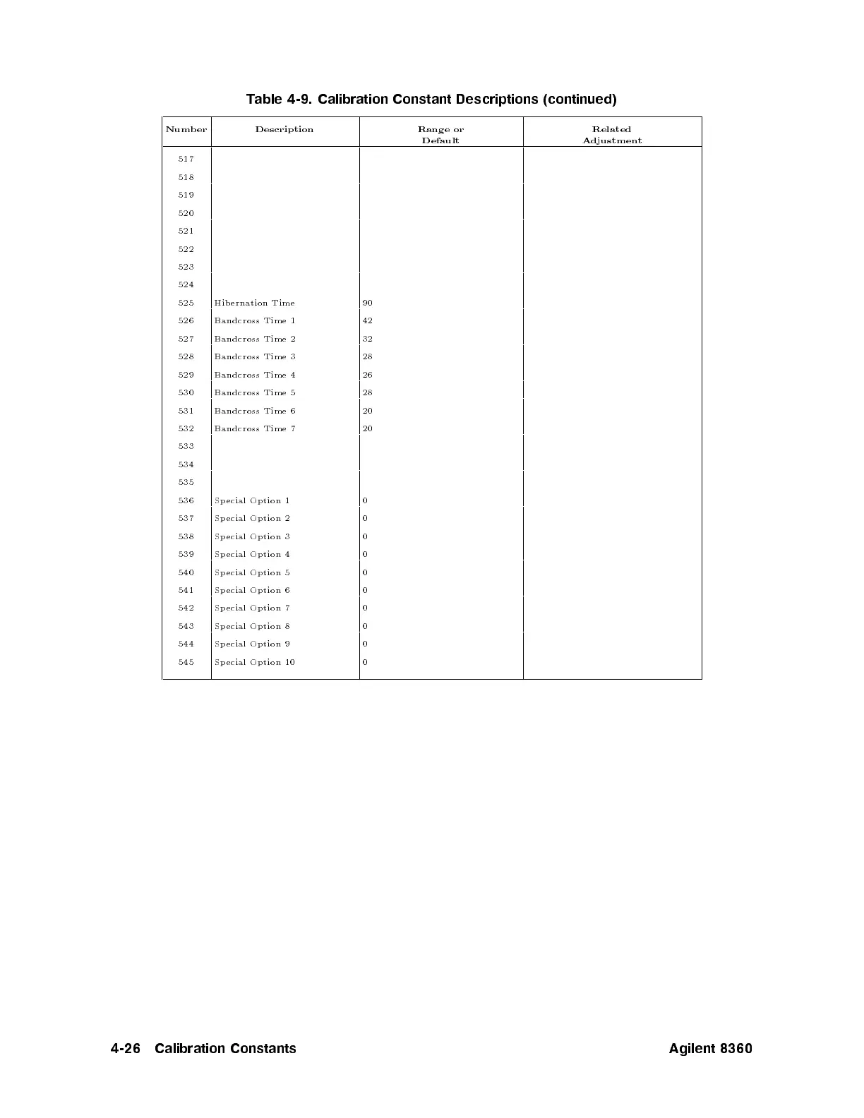 4-26 Calibration Constants Agilent 8360