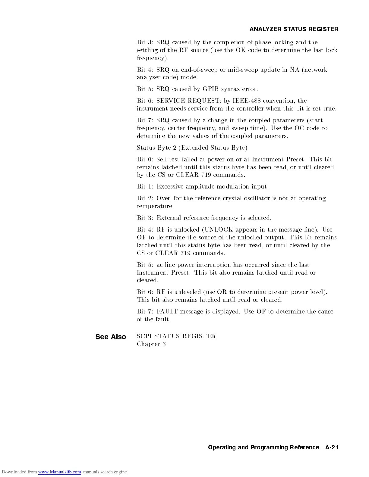 Bit 0: Self test failed at p ower on or at Instrument Preset. This bit