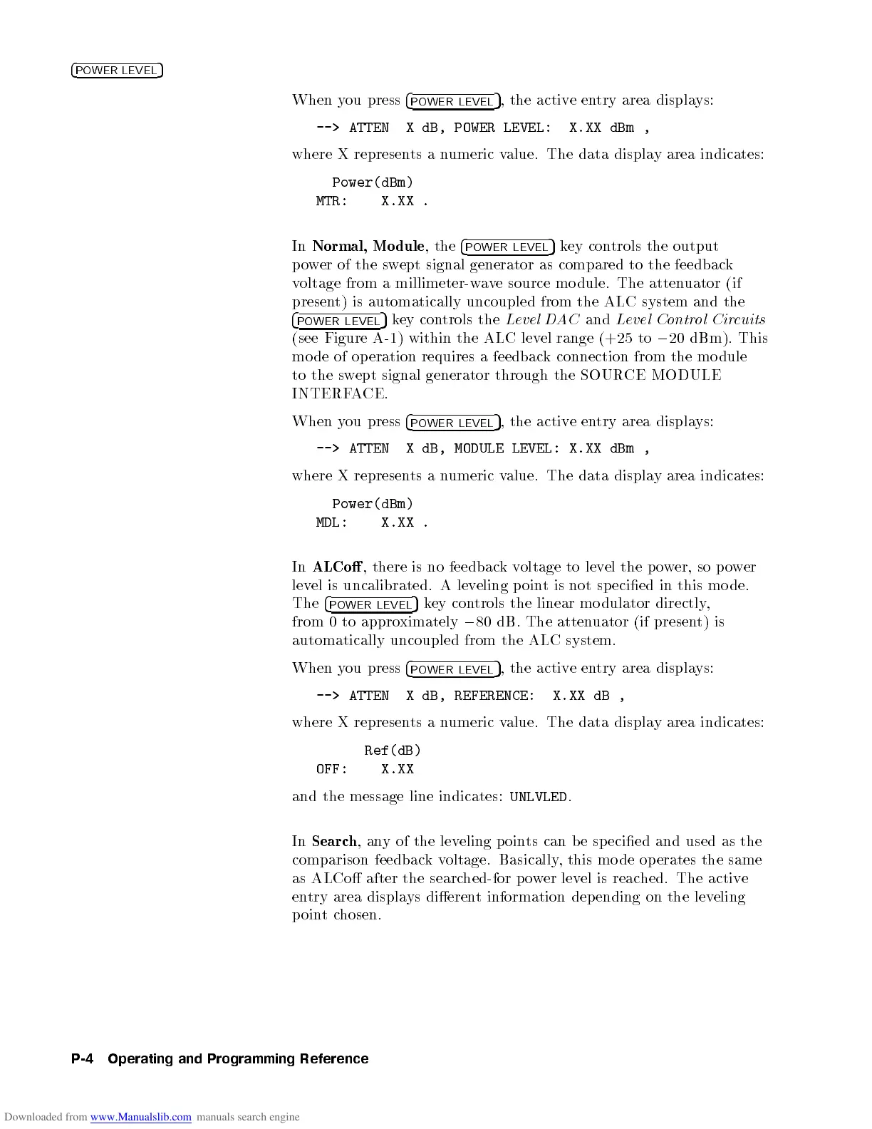 --> ATTEN X dB, POWER LEVEL: X.XX dBm ,