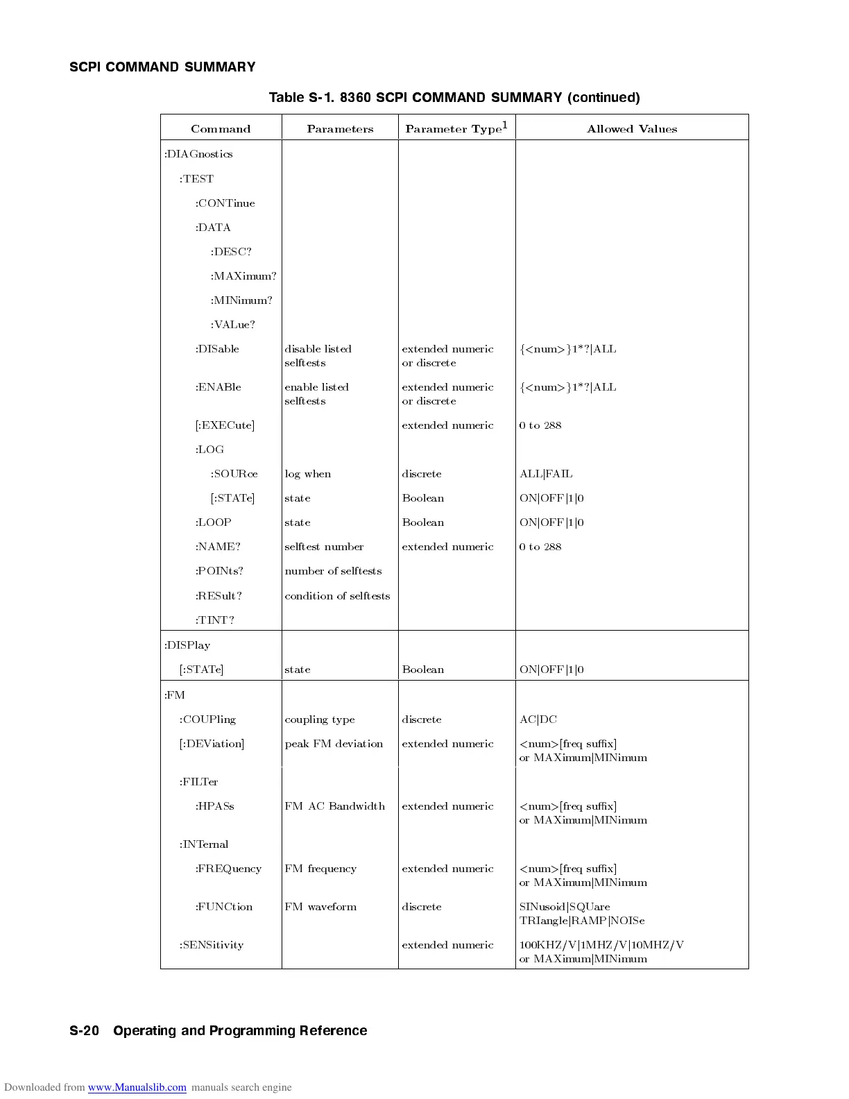 Table S-1. 8360 SCPI COMMAND SUMMARY (continued)