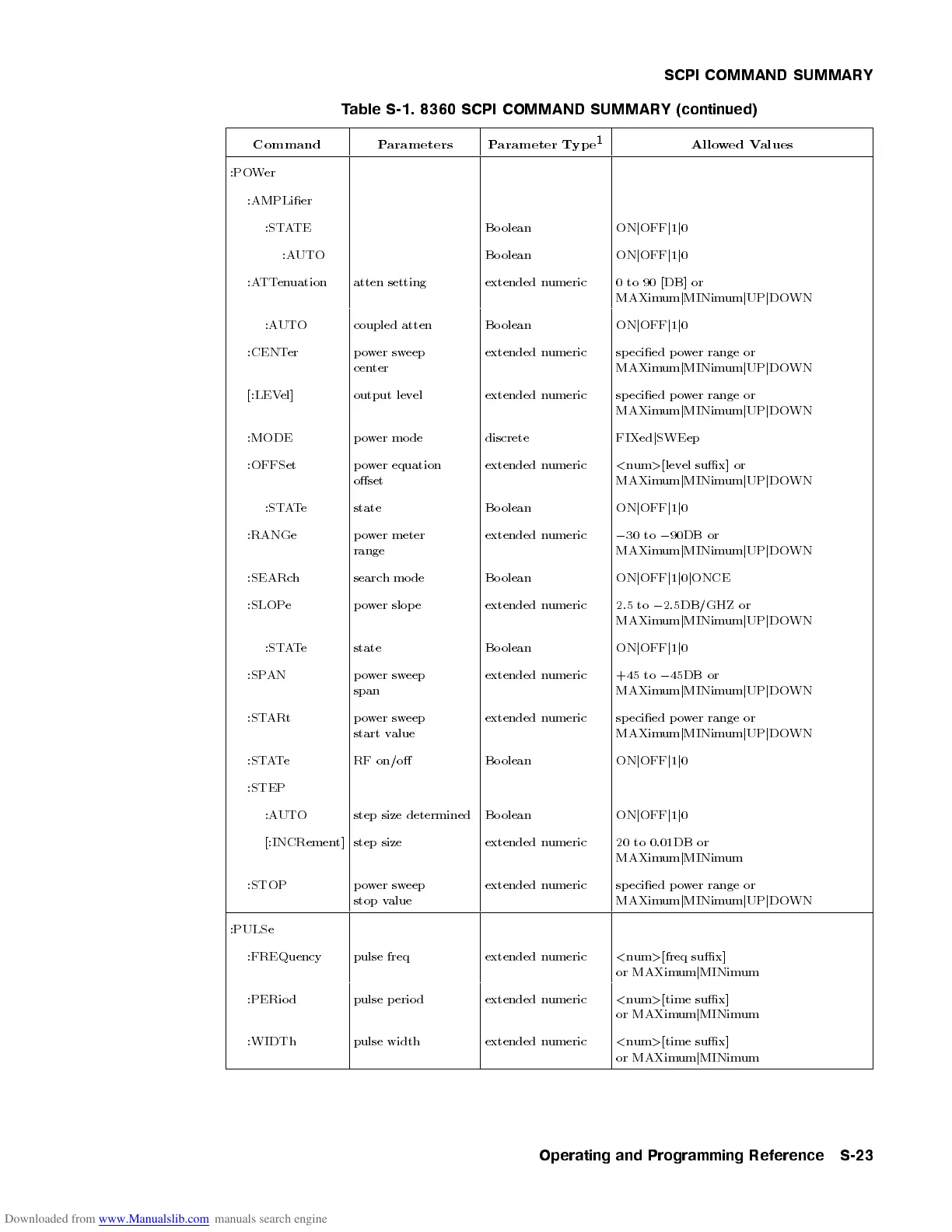 Table S-1. 8360 SCPI COMMAND SUMMARY (continued)