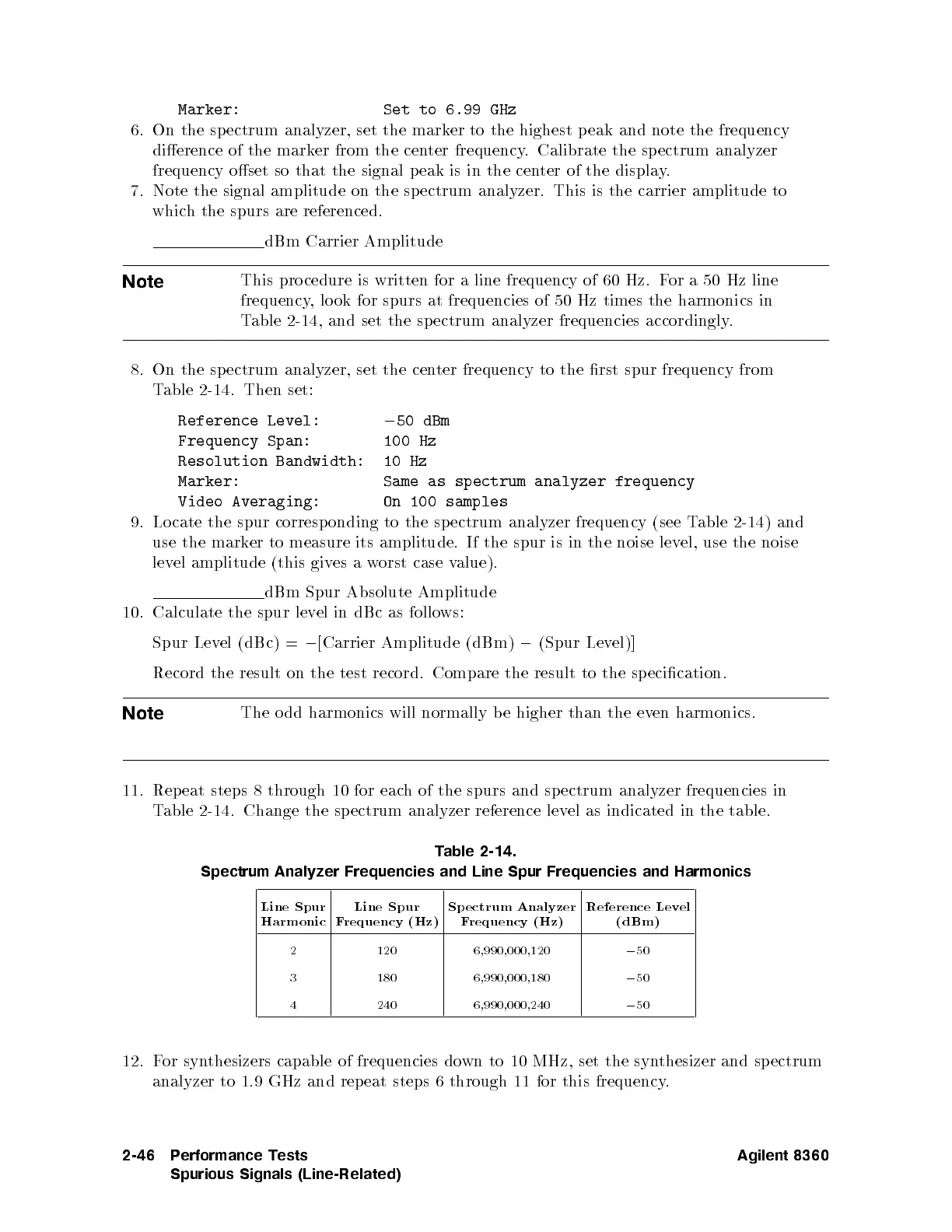 Spectrum Analyzer Frequencies and Line Spur Frequencies and Harmonics