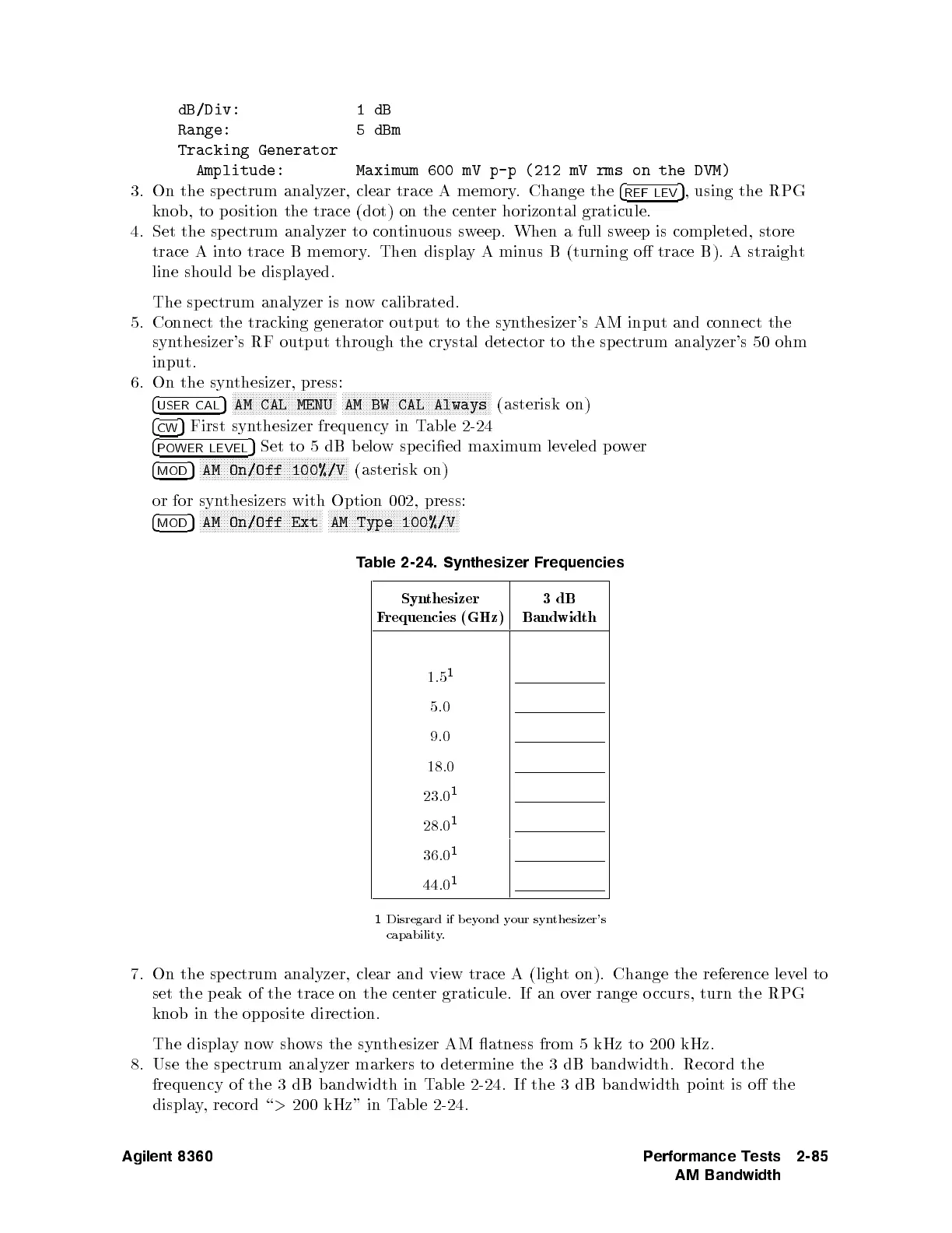 frequency of the 3 dB bandwidth in Table 2-24. If the 3 dB bandwidth point is o the