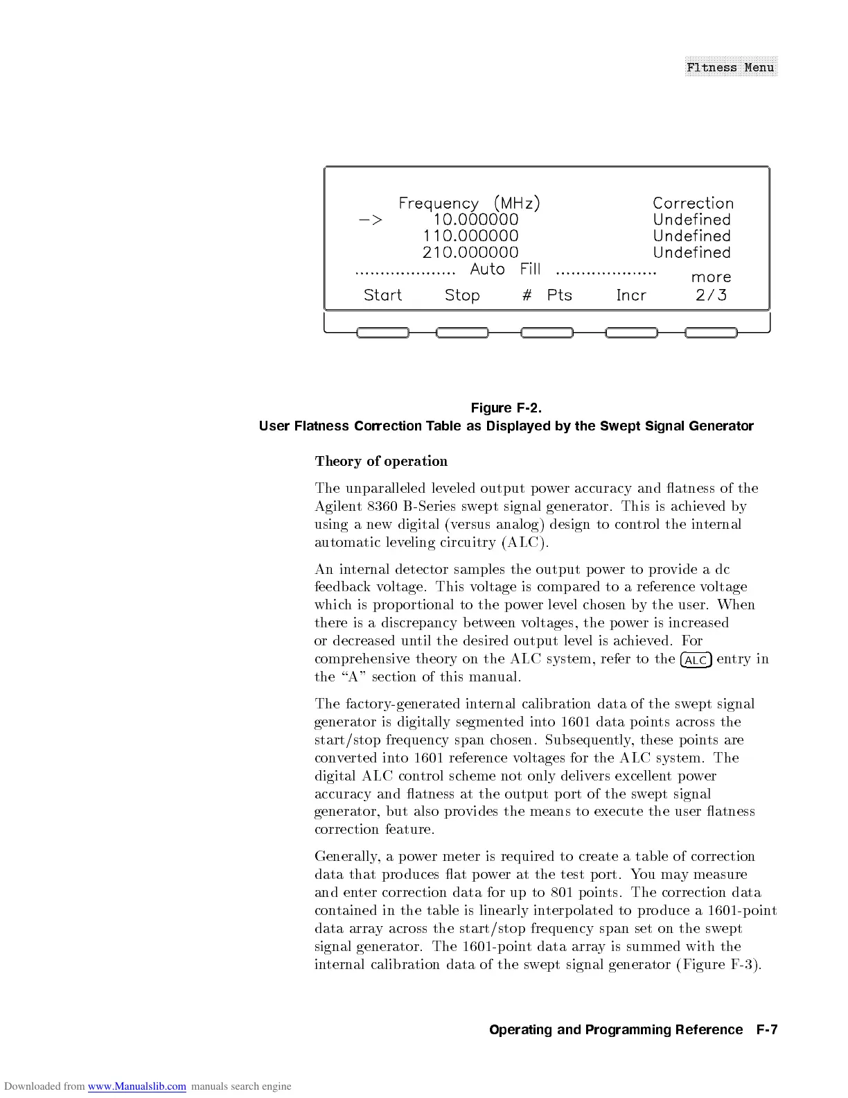 User Flatness Correction Table as Displayed by the Swept Signal Generator