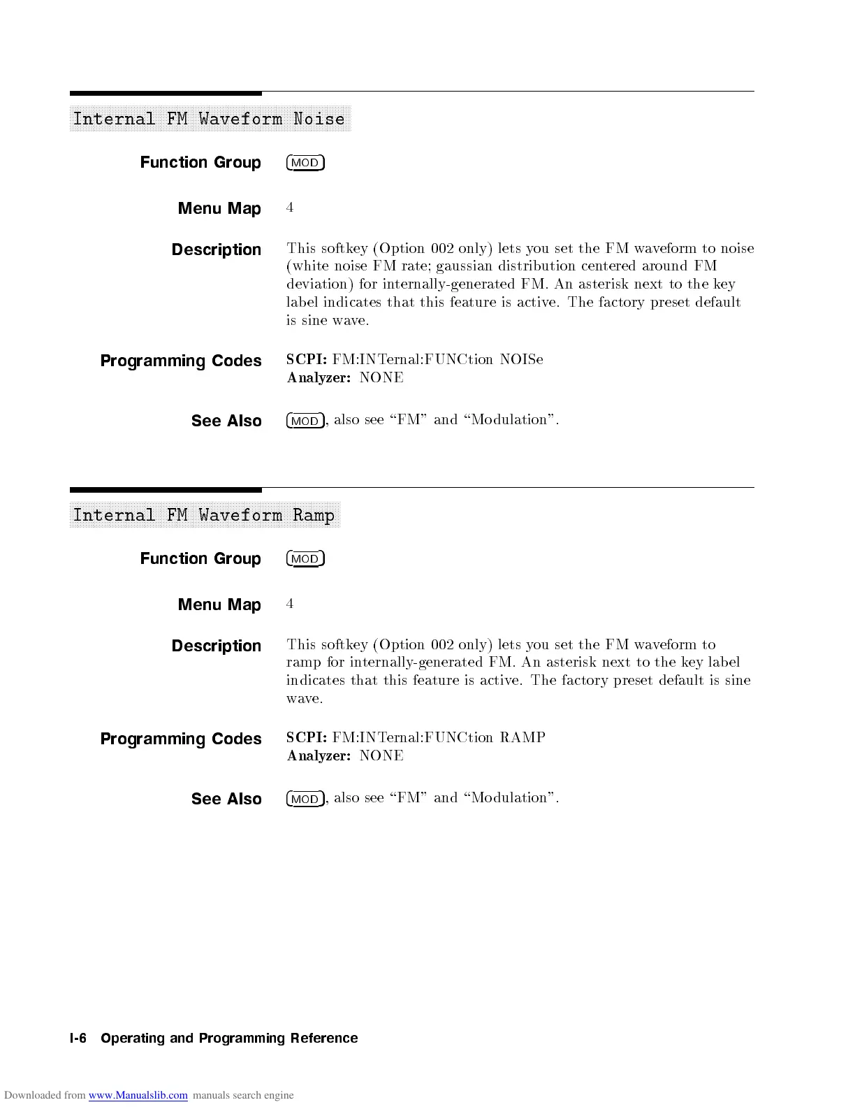 This softkey (Option 002 only) lets you set the FM waveform to noise
