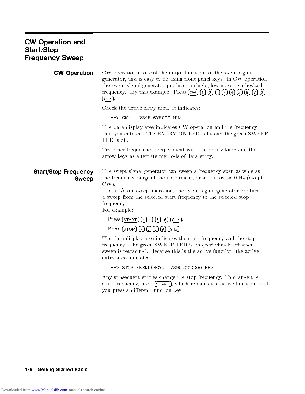 CW op eration is one of the ma jor functions of the swept signal
