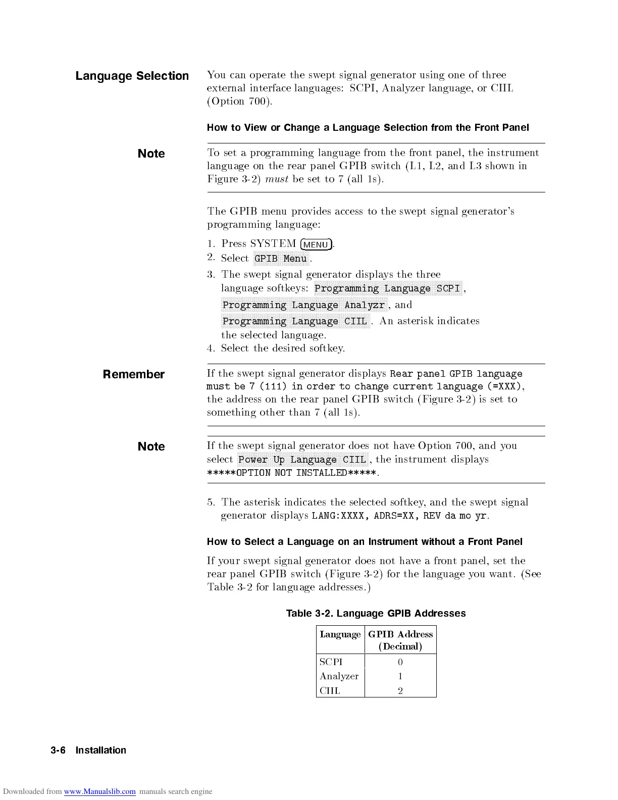 rear panel GPIB switch ( Figure 3-2) for the language y