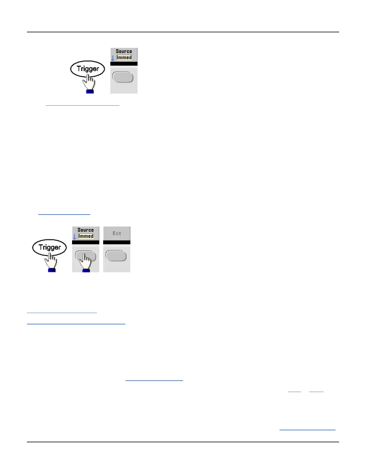 Manual trigger mode (front panel only): you manually trigger the instrument by pressing Trigger. The instrument ini-