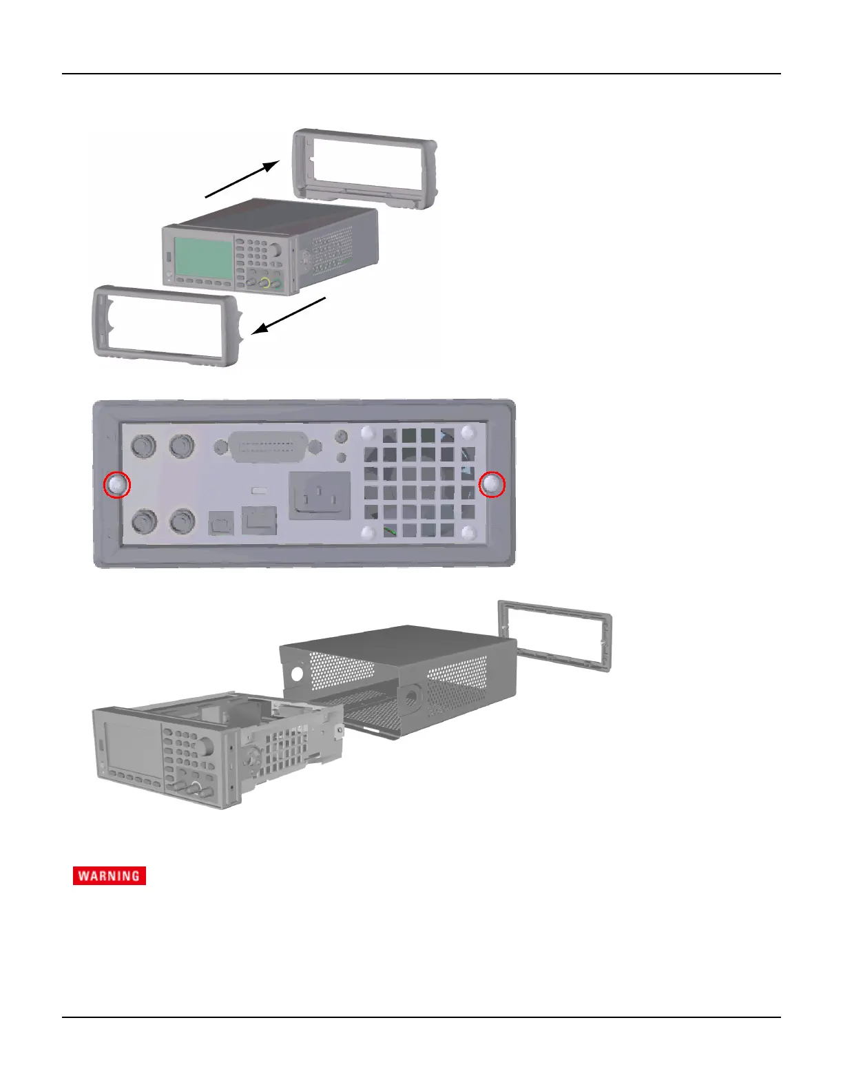 4. Loosen the two captive screws (circled in red, below) in the rear bezel and remove the rear bezel.