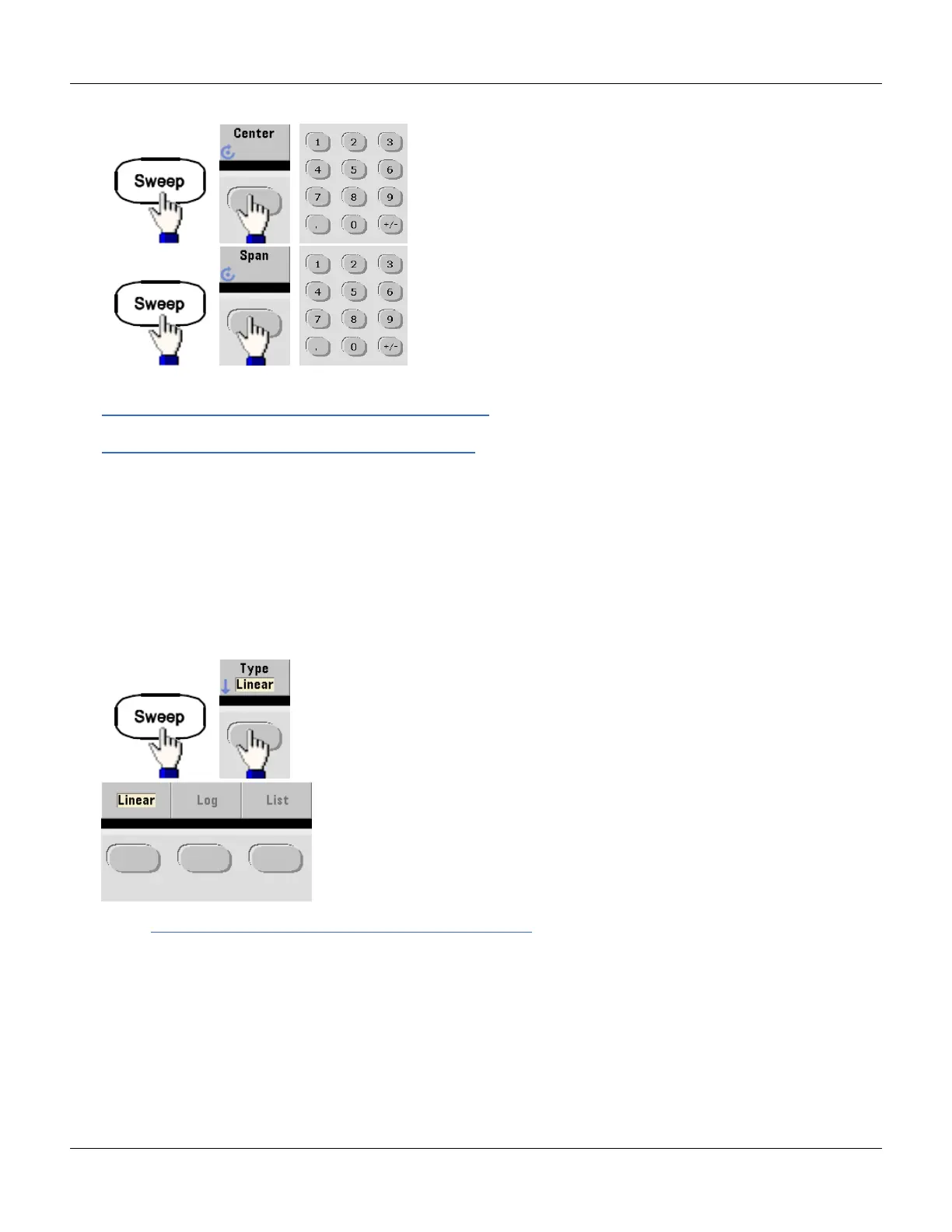 You can sweep with linear or logarithmic spacing, or with a list of sweep frequencies. For a linear sweep, the instrument