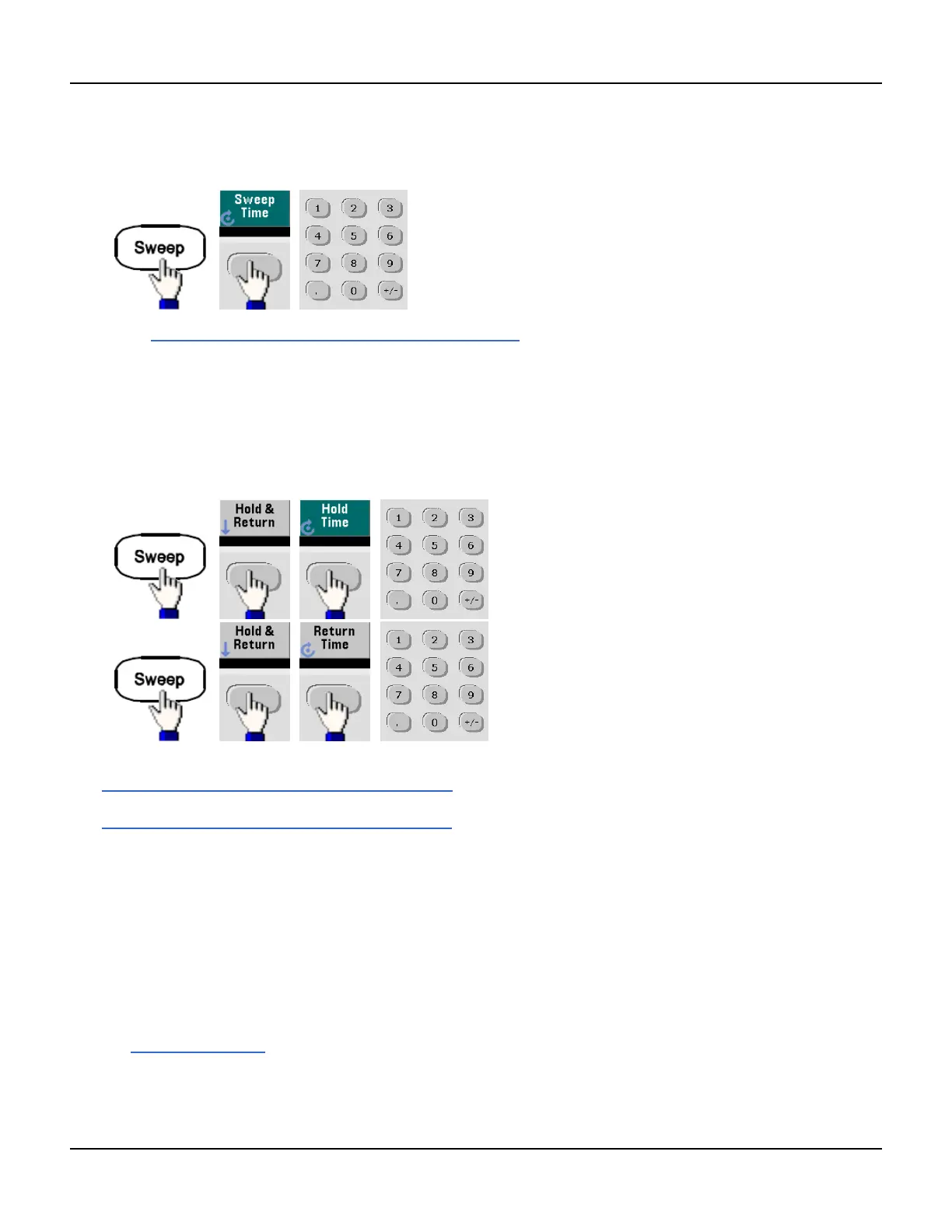 Hold time specifies time (in seconds) to remain at the stop frequency, and return time specifies the number of seconds