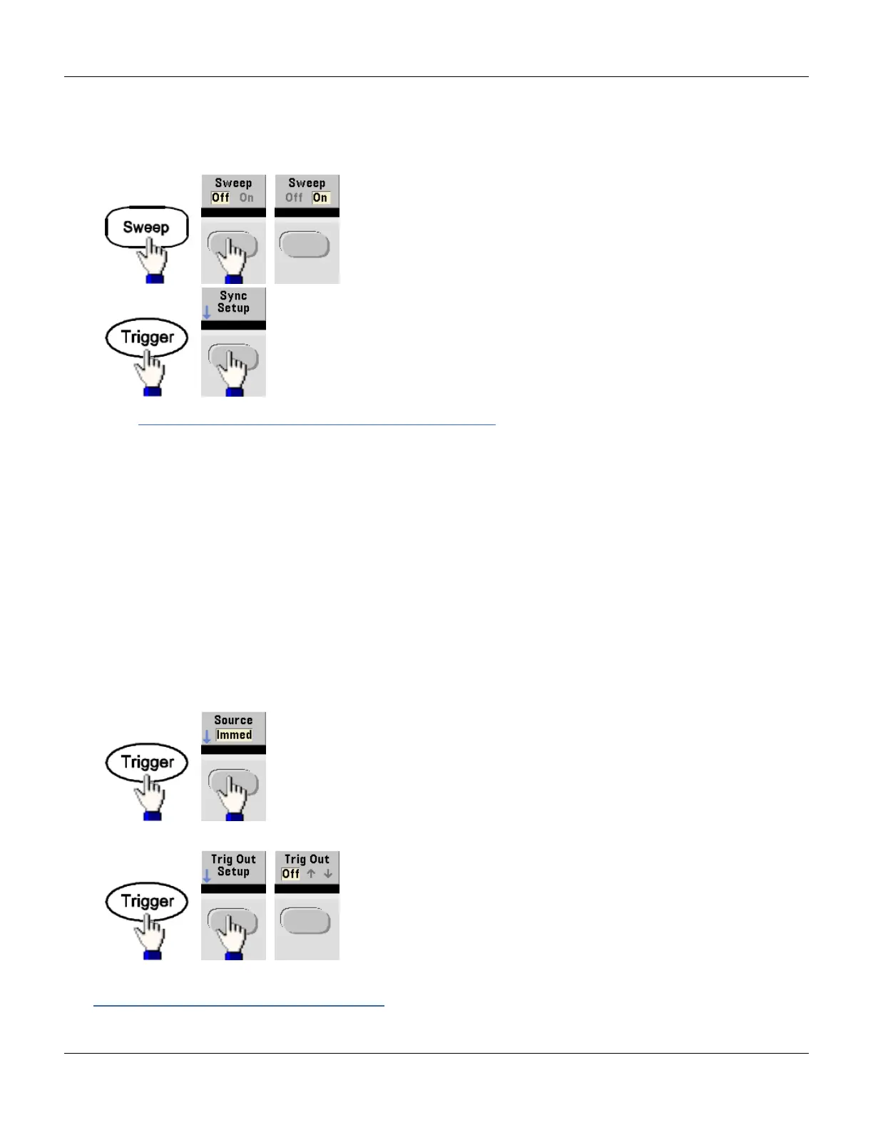 l With the Manual source, the instrument outputs one sweep each time the front-panel Trigger key is pressed.