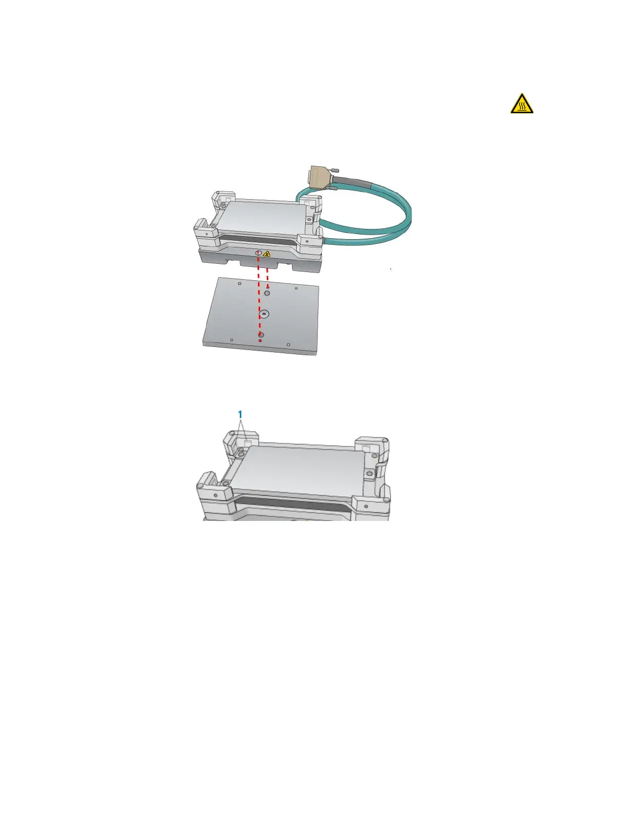 6 Determine if the pairs of alignment tabs (figure, item 1) in each corner of the plate