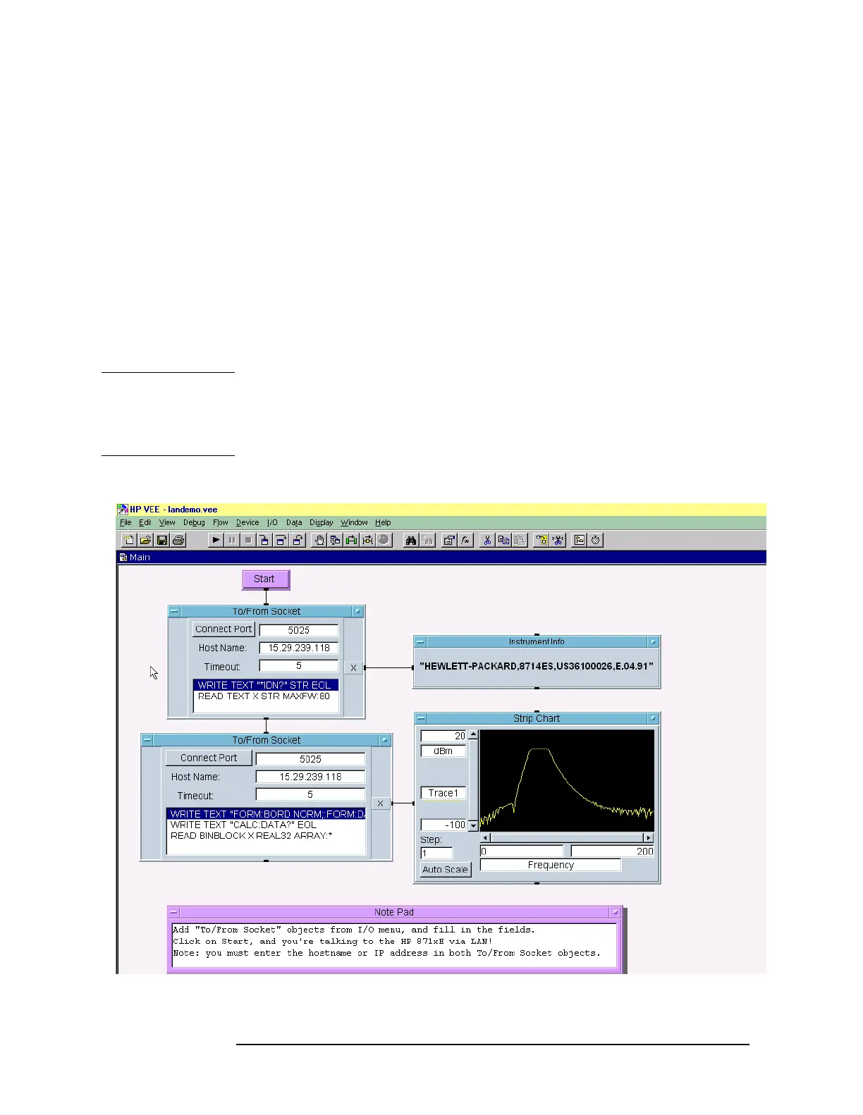 To control your analyzer via socket LAN using VEE, click on the VEE
