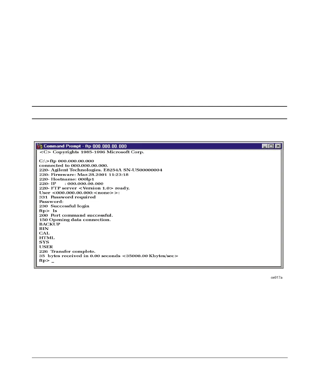 The following steps outline a sample FTP session from the MS-DOS Command Prompt:
