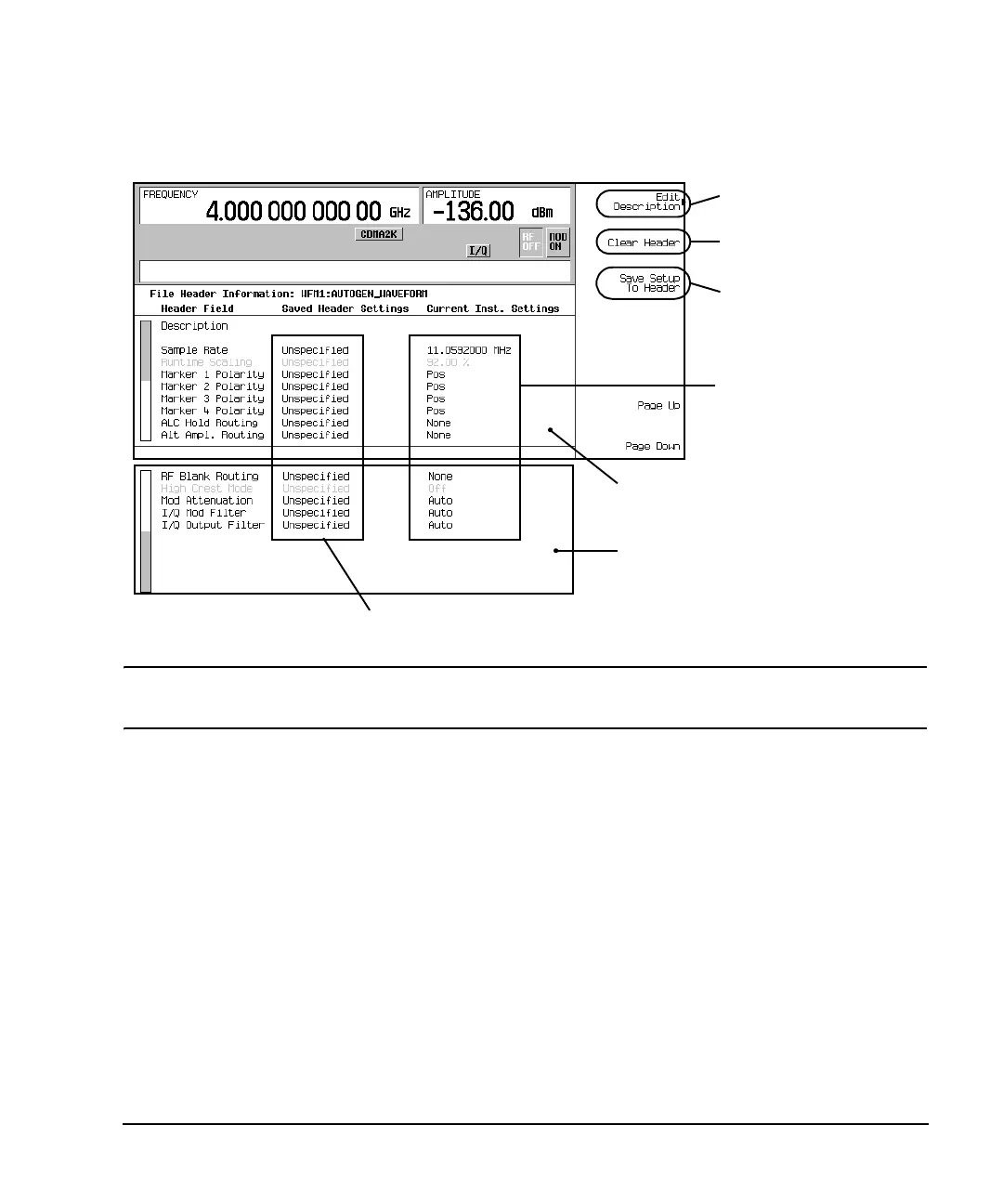 NOTE If a setting is unspecified in the file header, the signal generator’s current value for that