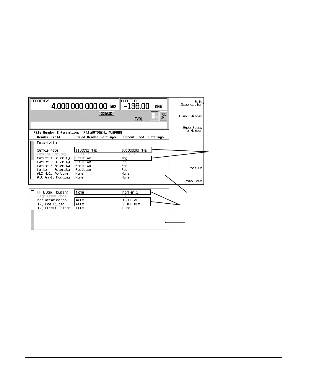 8 to the current signal generator setup, but that the saved header values have not changed (as shown in