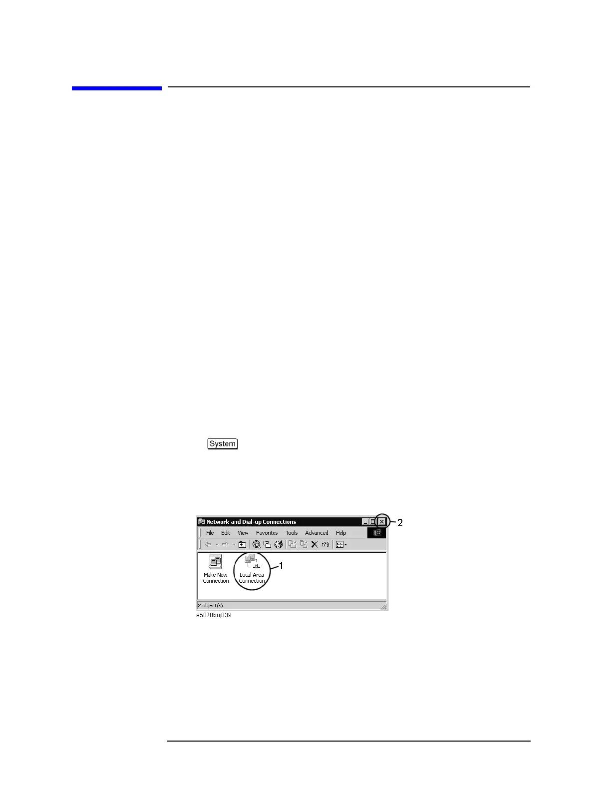 4. Double-click the Local Area Connection icon (1 in Figure D-1) in the Network and