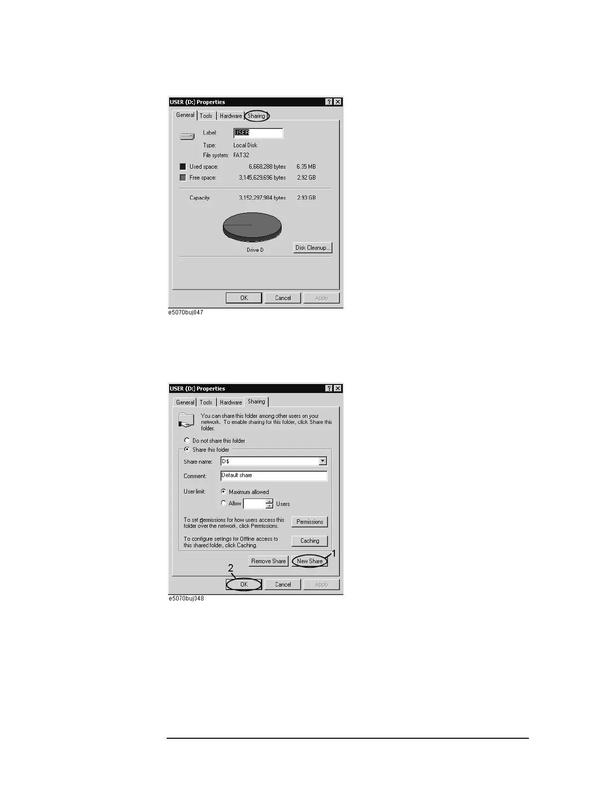 Share this folder if (C:) is selected. Click the New Share button (1 in Figure