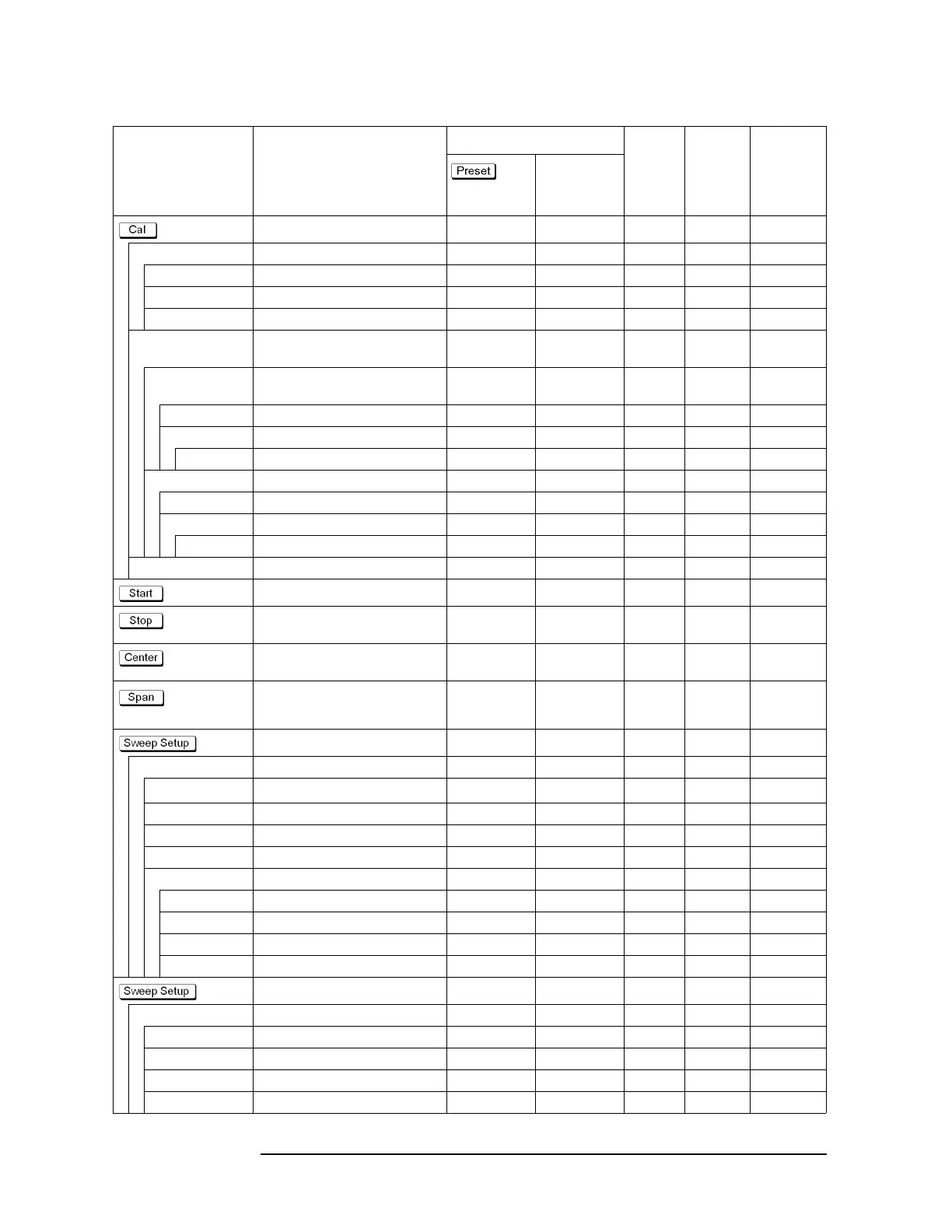 List of Default Values, Save/Recall Settings, and Backup Settings