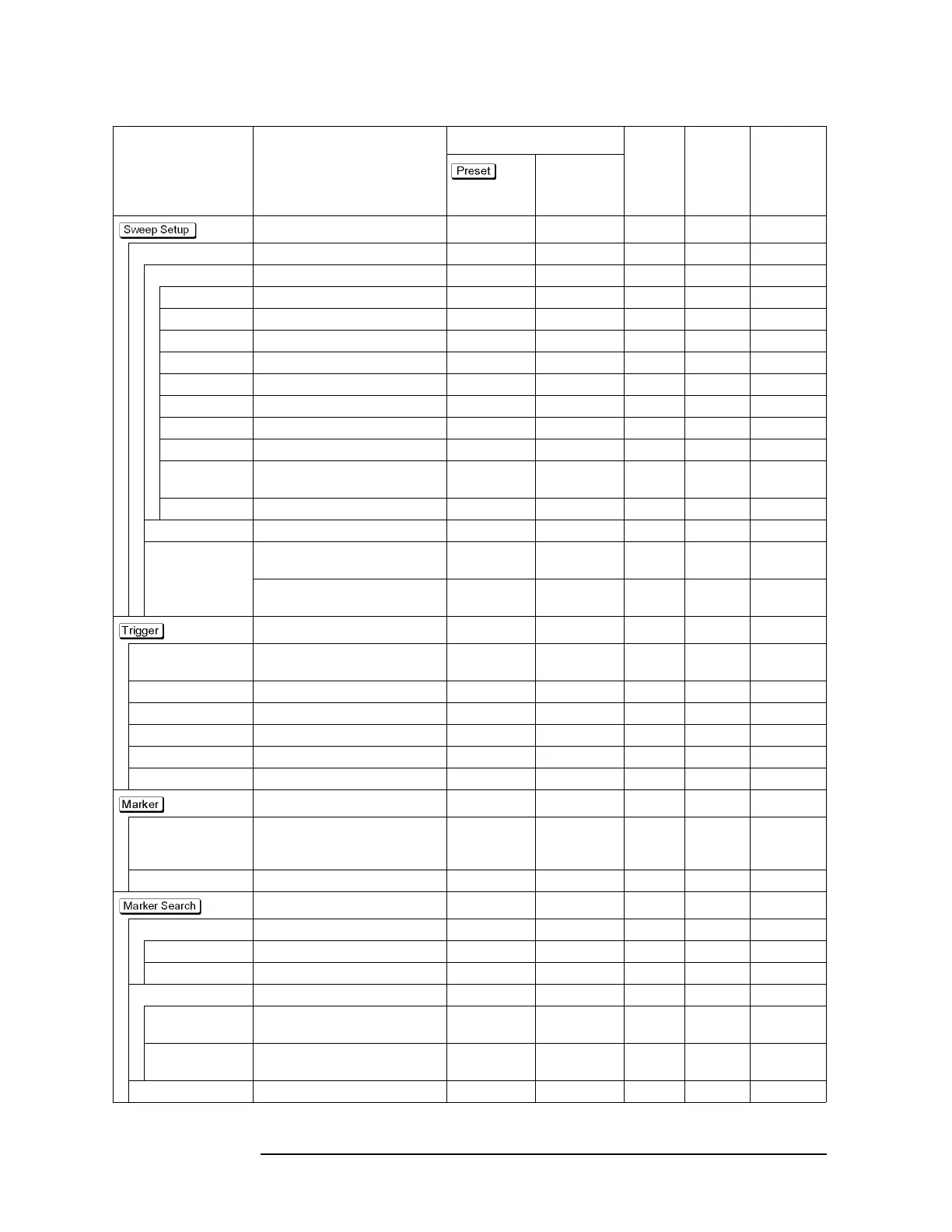 List of Default Values, Save/Recall Settings, and Backup Settings