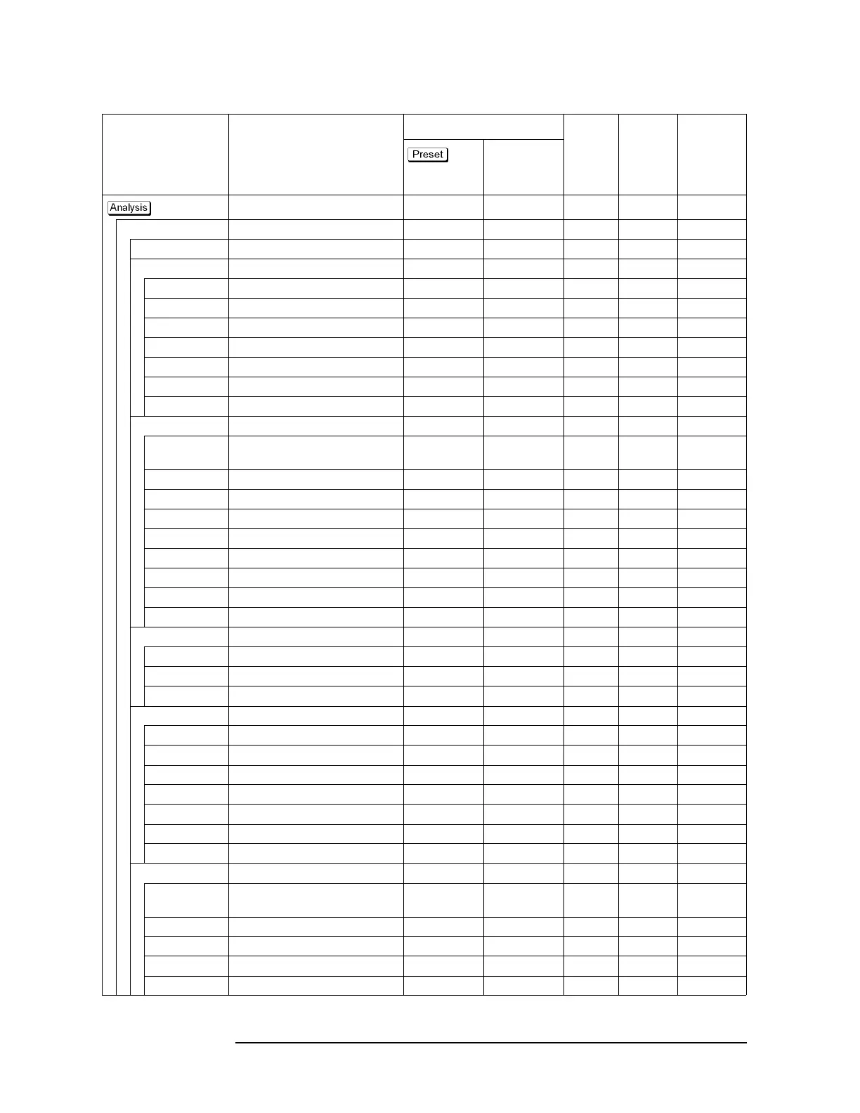 List of Default Values, Save/Recall Settings, and Backup Settings
