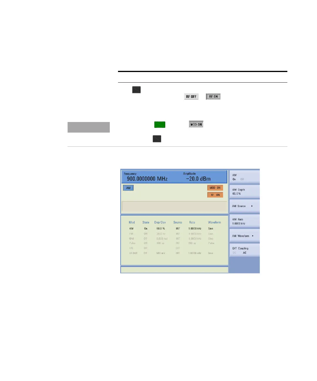 need to press hardkey to enable the modulator.
