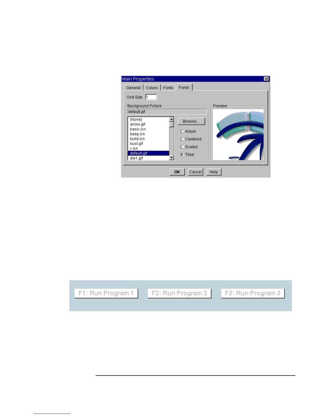 Properties... dialog box to connect to a function key, Enter, or Esc