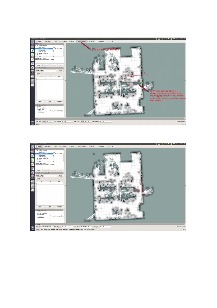 (3)Regulate the actual position of the robot on the map displayed in rviz, and regulate the chassis
