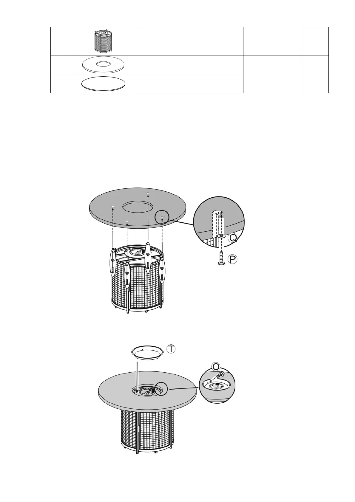 2. Coloque la cubierta de la mesa sobre la base. Fije la base de la mesa a la base del calentador,