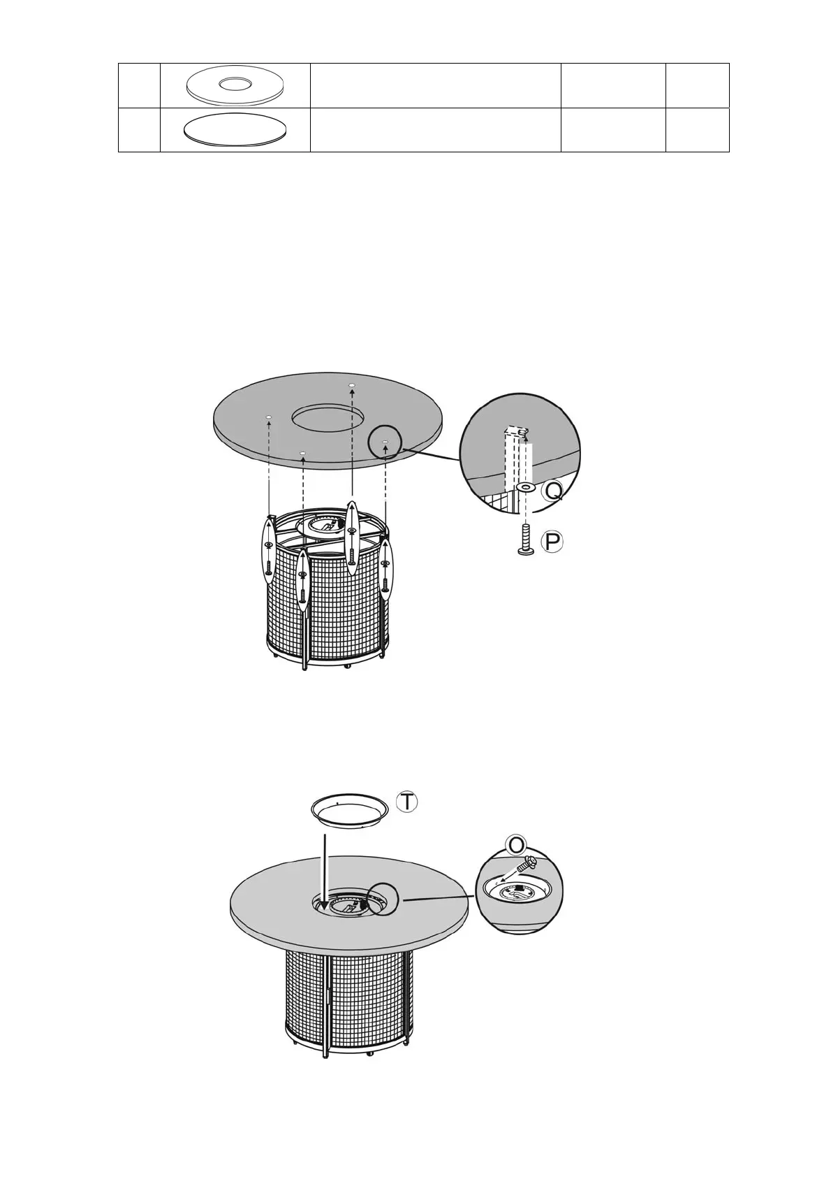2. Place the firepit tabletop onto the firepit base. Secure the tabletop to the firepit base by