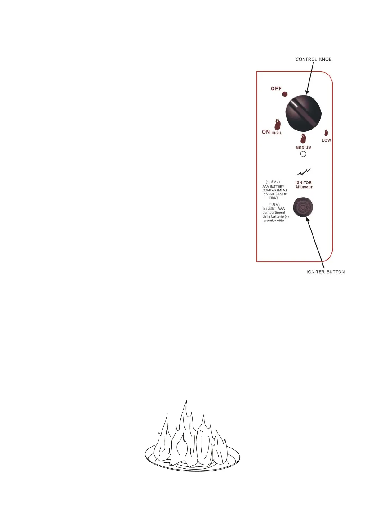 4. To shut down the fire pit, turn the control knob to the “OFF”